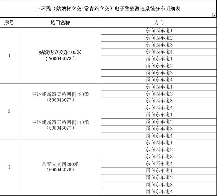 三环线(常青路立交-姑嫂树立交)新增的24套电子警察测速设备,已经调试完毕并通过计量鉴定机构审核,即将在春运临近前投入使用。