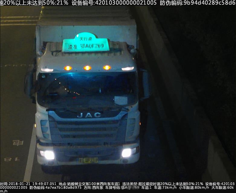 测试期间,电子警察测速设备每天均能抓拍到50余辆机动车超速行为,由于采用了高清级别的监控探头,夜间抓拍也非常清晰。