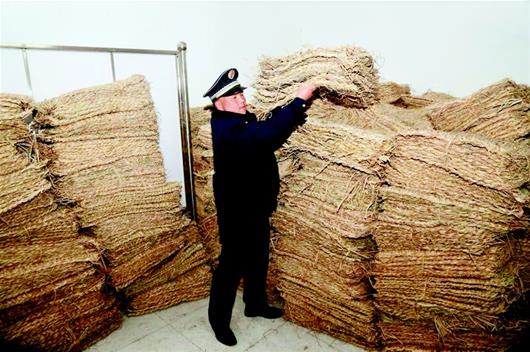 图为:1月22日,襄阳市襄城区城管工作人员在转运站清点搬运防冻防滑物资。(视界网 李旭晖 摄)