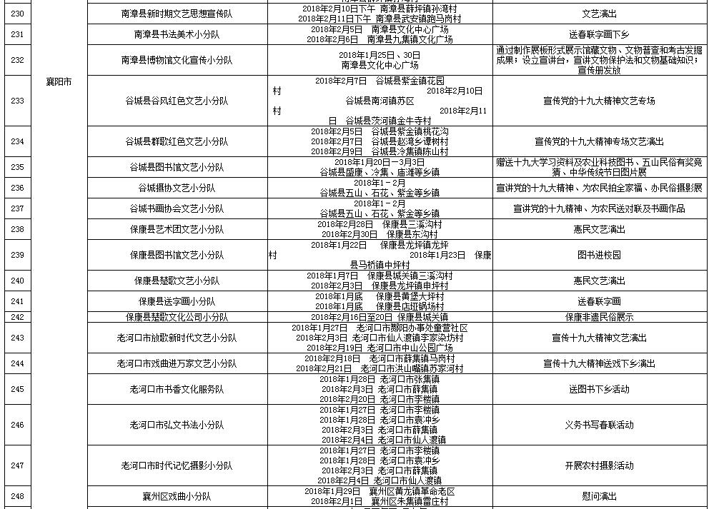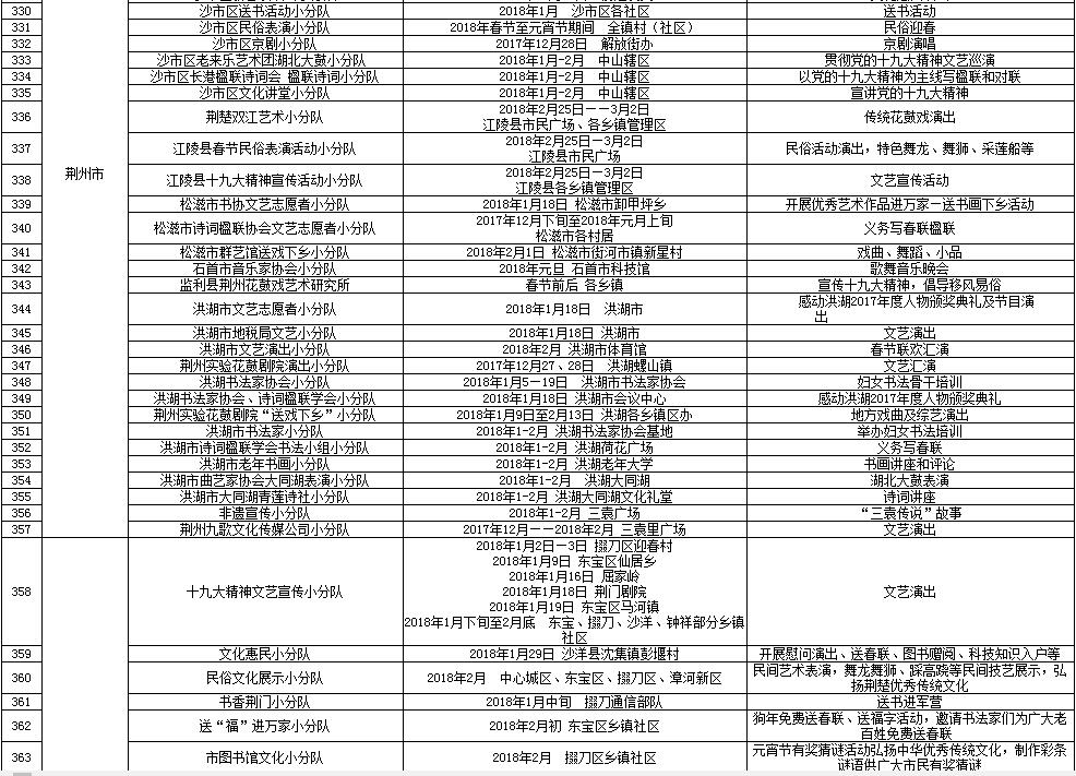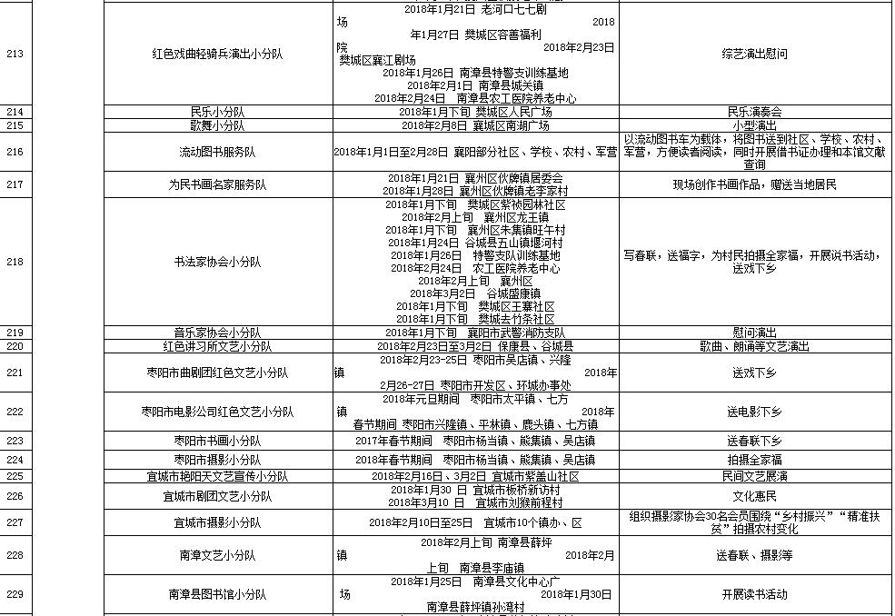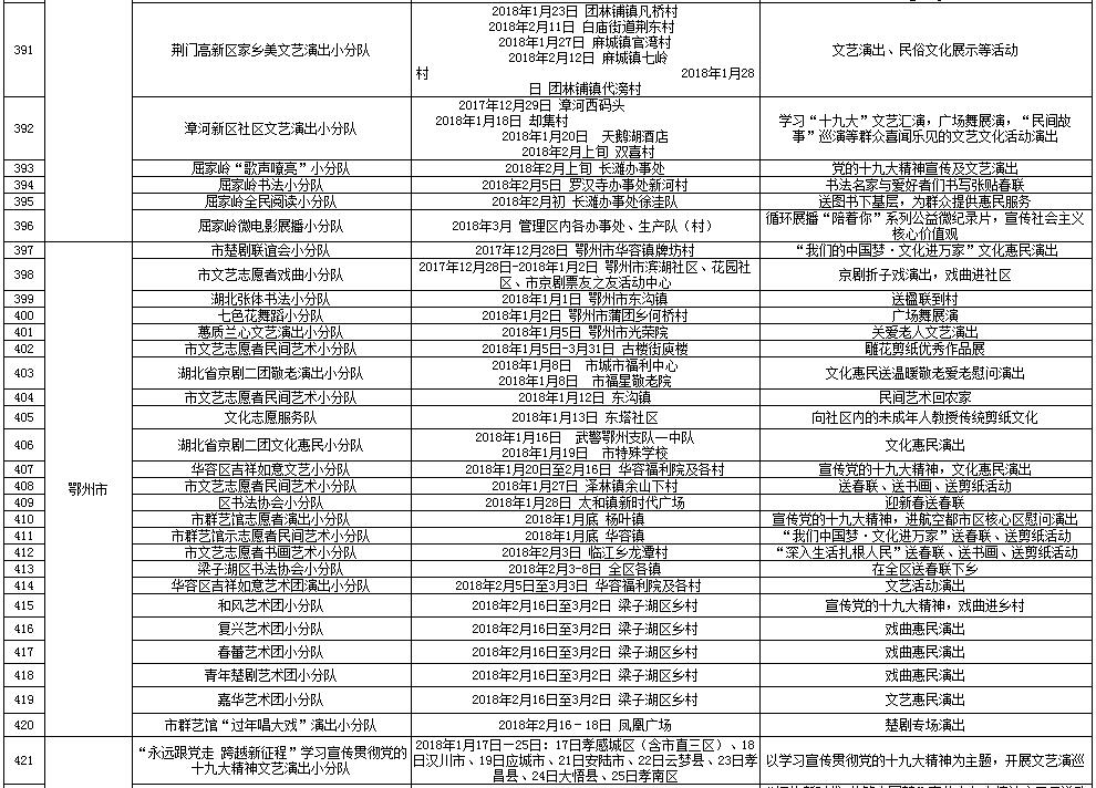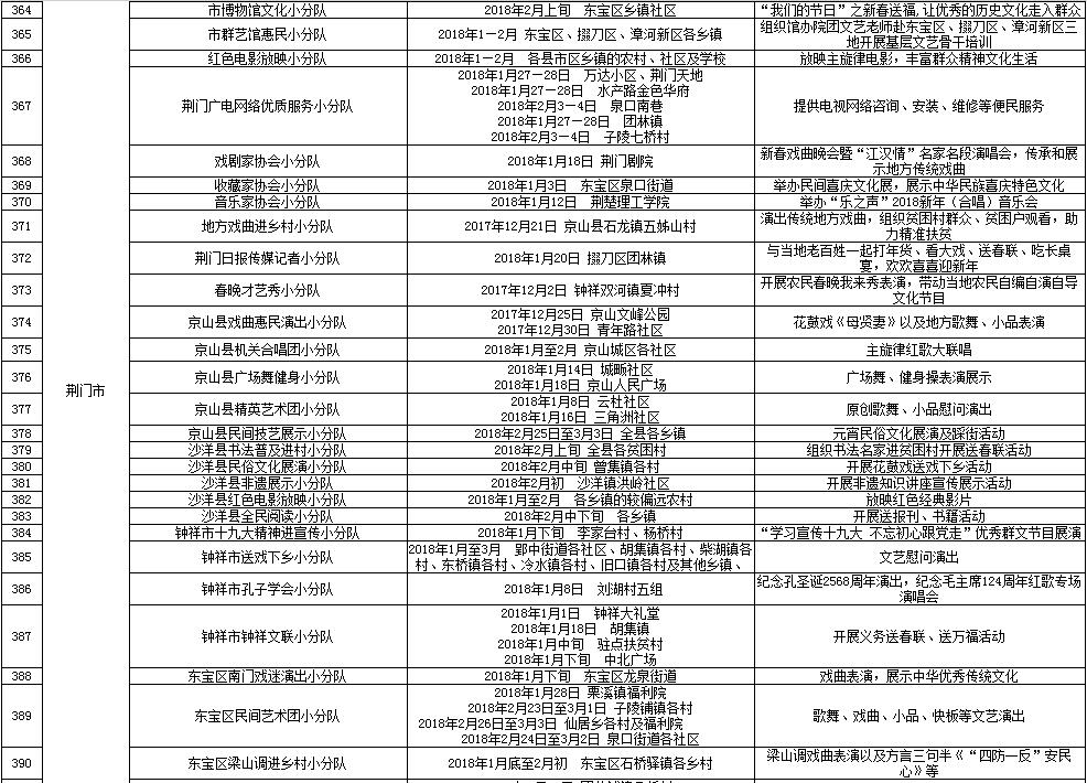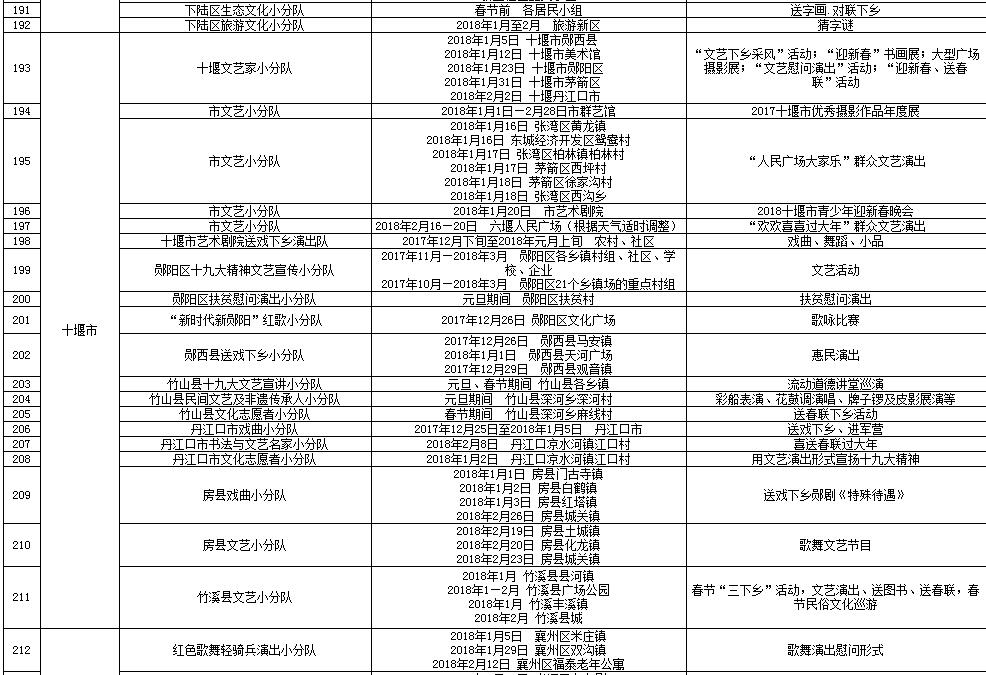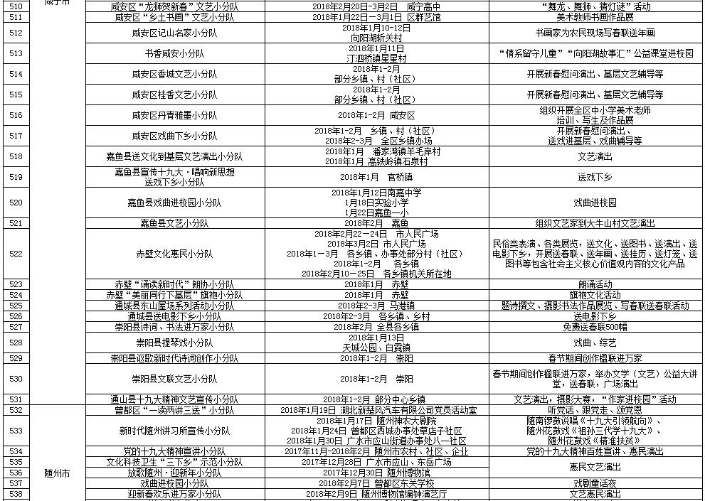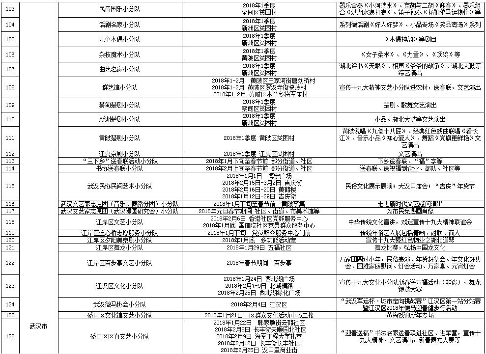 湖北省2018年元旦春节期间荆楚“红色文艺轻骑兵”下基层重点活动一览表