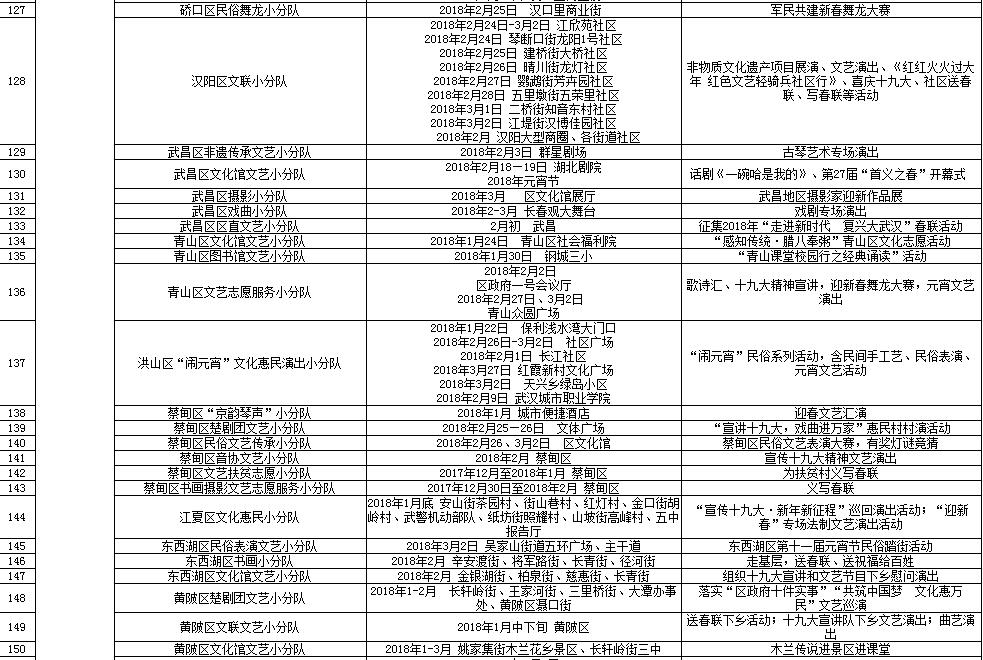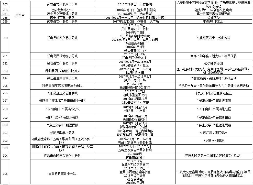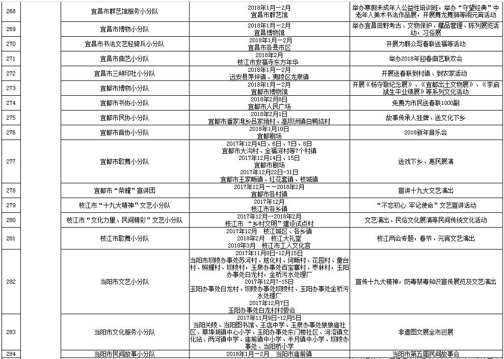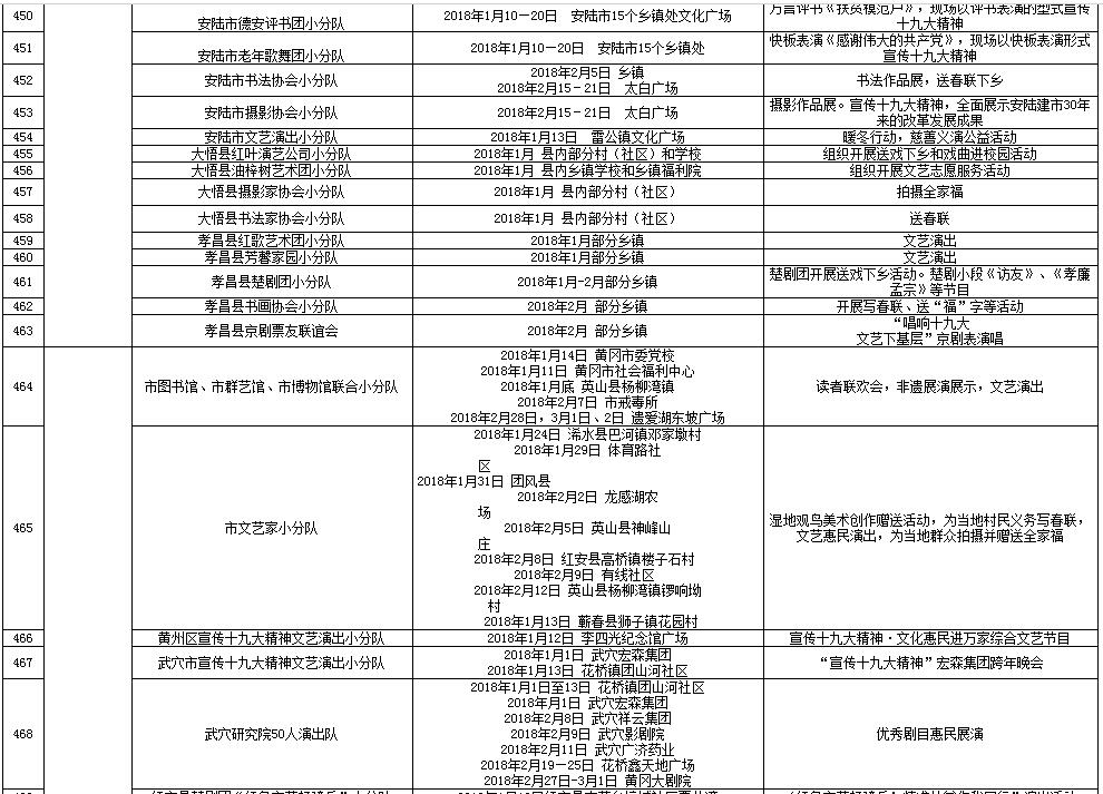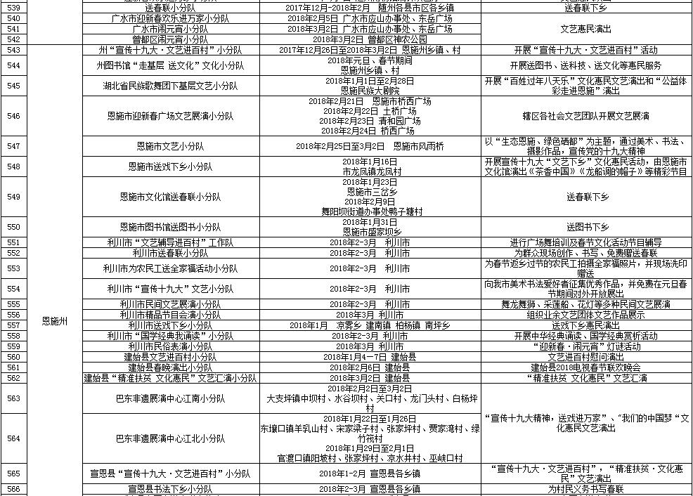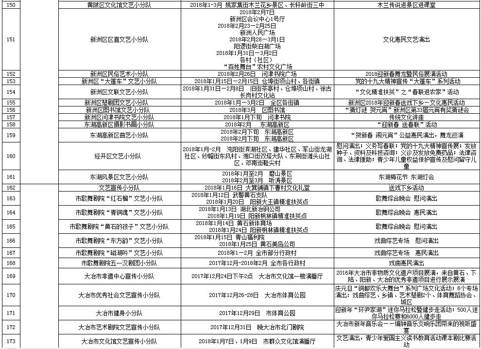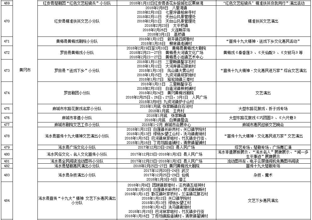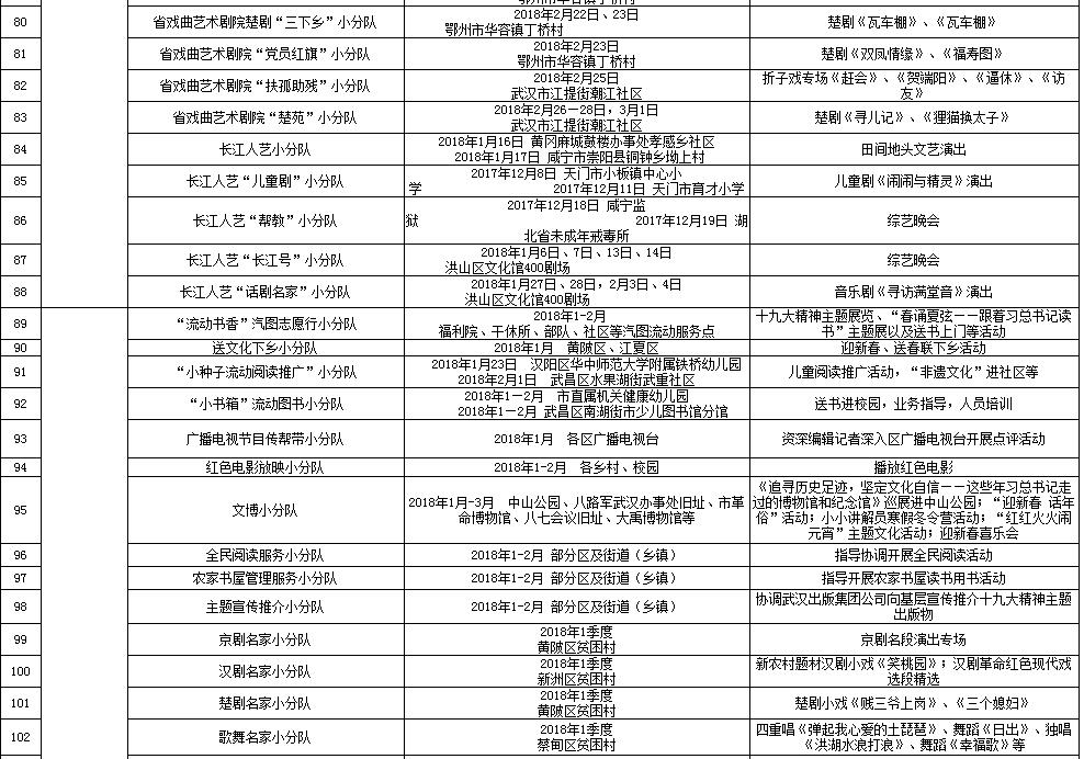湖北省2018年元旦春节期间荆楚“红色文艺轻骑兵”下基层重点活动一览表