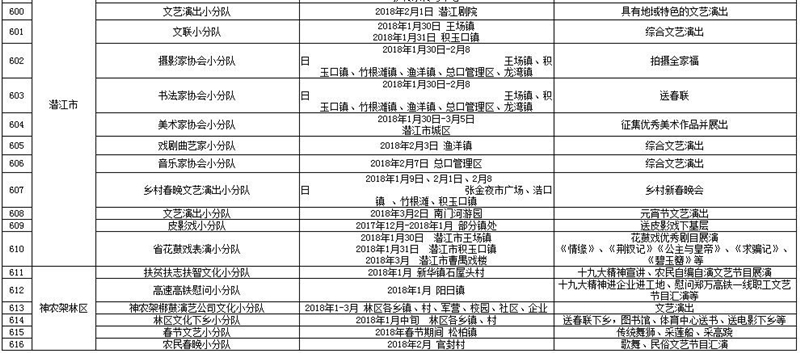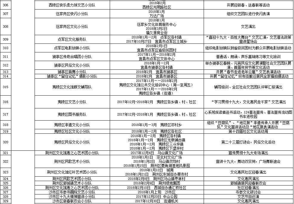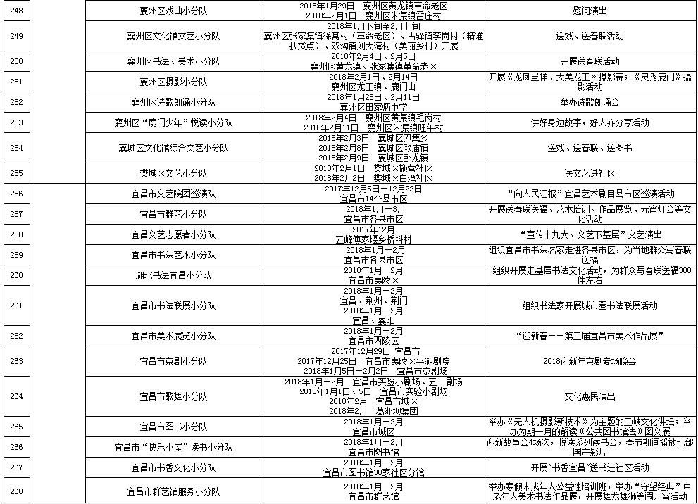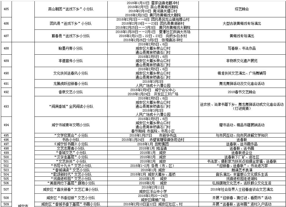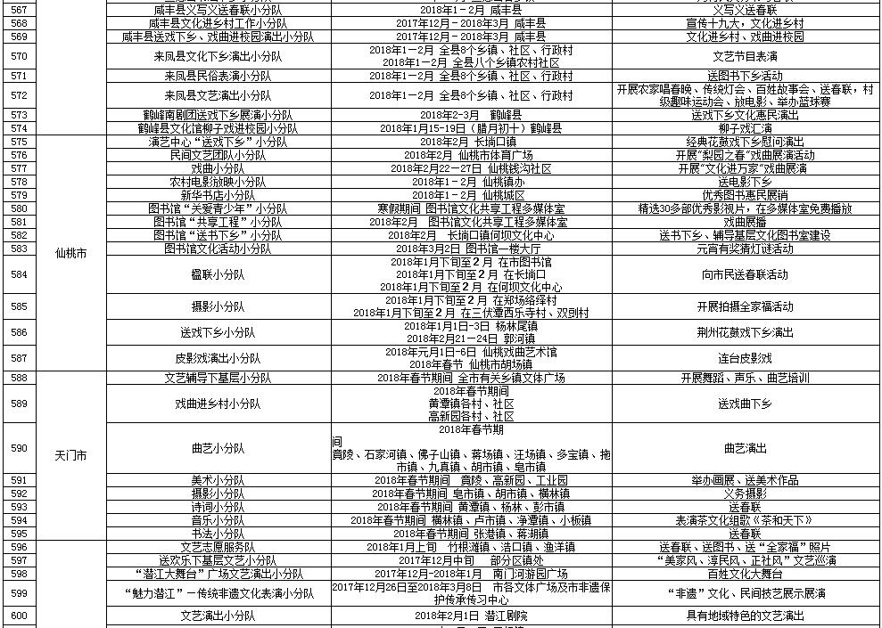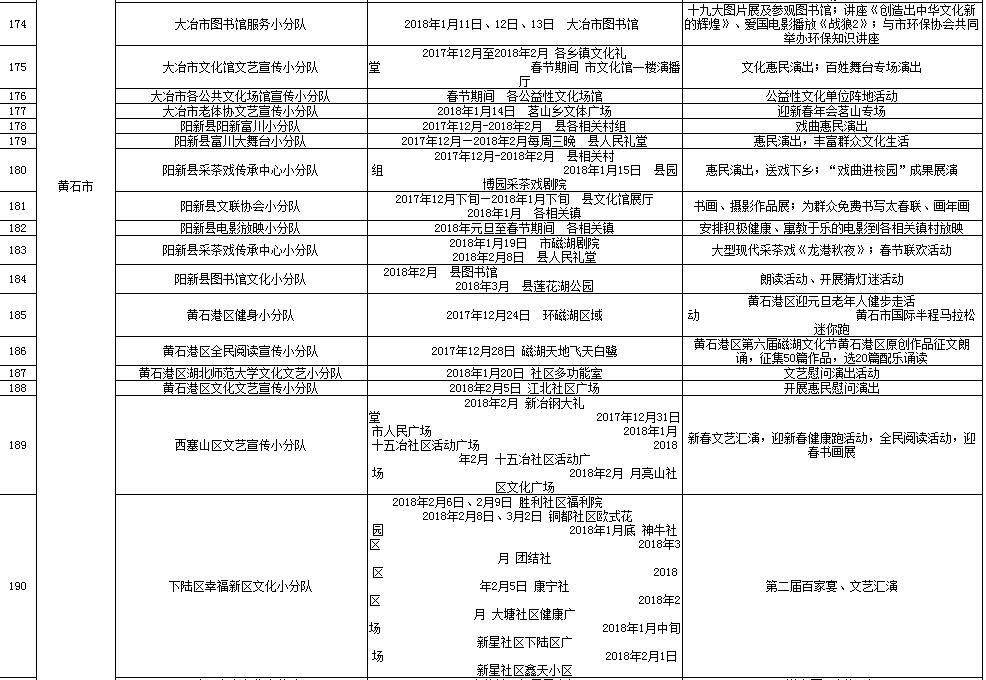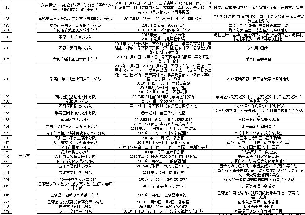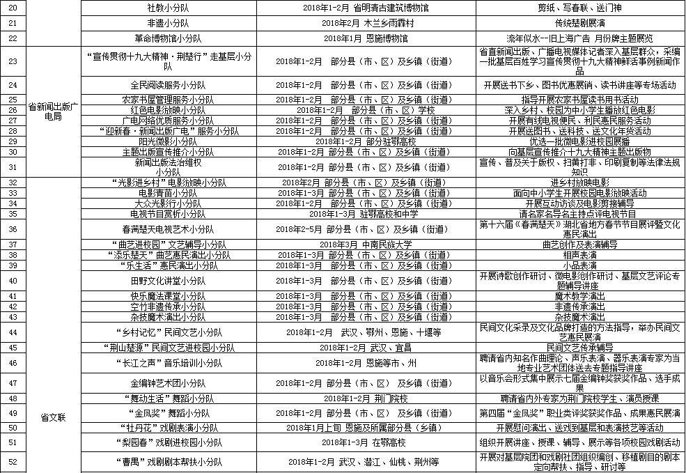 湖北省2018年元旦春节期间荆楚“红色文艺轻骑兵”下基层重点活动一览表