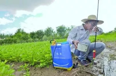 (霍计武打农药,天气炎热,满脸汗水)