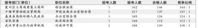 根据湖北华图教育对报名前5日的统计数据,今年竞争最激烈的依然是武汉市的职位,竞争比例达10.77∶1,黄陂区、新洲区司法警察岗无考生报考。而在湖北的其他地级市中,天门、荆州、潜江竞争相对较低,最低的天门职位平均竞争比例只有1.99∶1,省直机关热度排在首位,竞争比达到10.68∶1,法官、检察官助理职位遇冷,竞争比仅为1.6∶1。