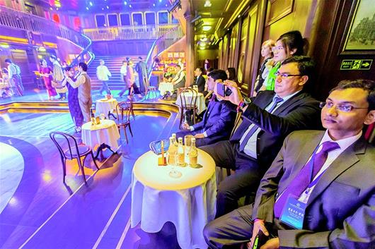 移步到酒吧,一段爱情故事正在上演,一对分别了十年的恋人在知音号上偶遇,和着凄美的音乐,巴基斯坦、俄罗斯、乌兹别克斯坦、印度等国的嘉宾纷纷用手机拍照。
