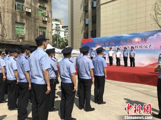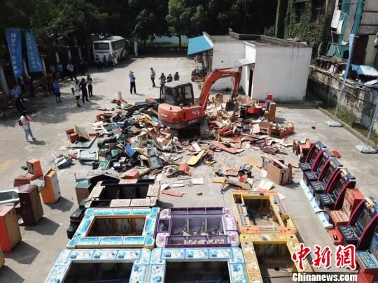 15日上午,湖北省内武汉、宜昌、荆门等17市州集中开展赌博机销毁仪式,图为武汉分会场 张芹 摄