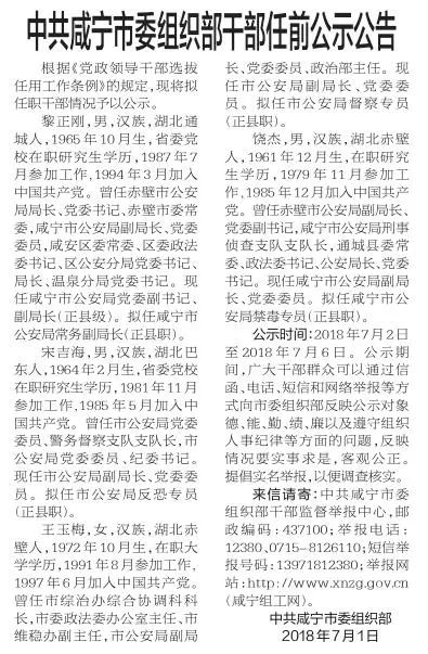 附咸宁日报公示截图: