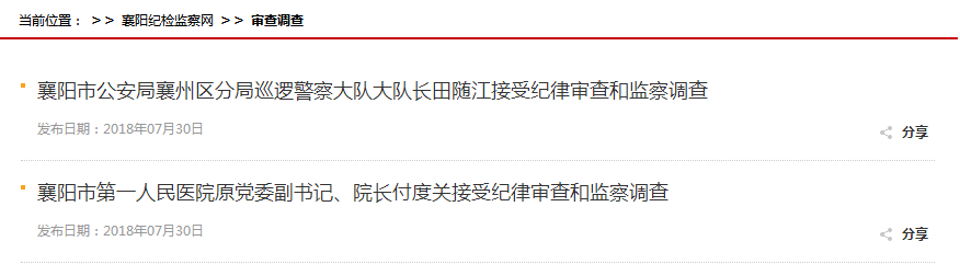 襄阳市公安局襄州区分局巡逻警察大队大队长田随江涉嫌严重违纪和职务违法,目前正在接受纪律审查和监察调查,并被采取留置措施。 (襄阳市纪委监委)