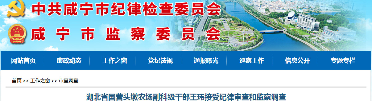 据嘉鱼县纪委监委消息:湖北省国营头墩农场副科级干部王玮涉嫌严重违纪和职务违法,目前正在接受纪律审查和监察调查,并被采取留置措施。(嘉鱼县纪委监委)