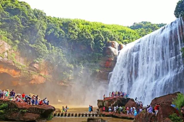 赤水大瀑布:又名十丈洞景区,是赤水国家级风景区名胜区的重点组成部分。瀑布高76米,宽80米,瀑水从悬崖绝壁上倾泻而下,似万马奔腾,气势磅礴。