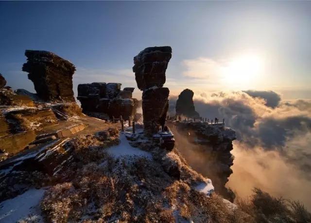梵净山:“梵净”乃“佛教净界”,梵净山的闻名与开发均起源于佛教,遍及梵净山区的四大皇庵、四十八脚庵庞大寺庙群。