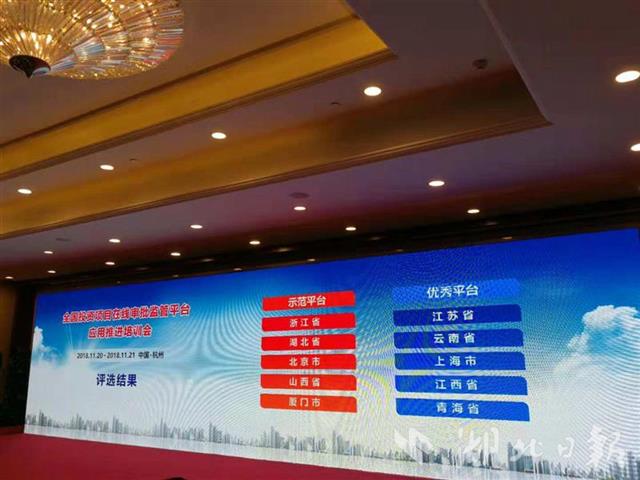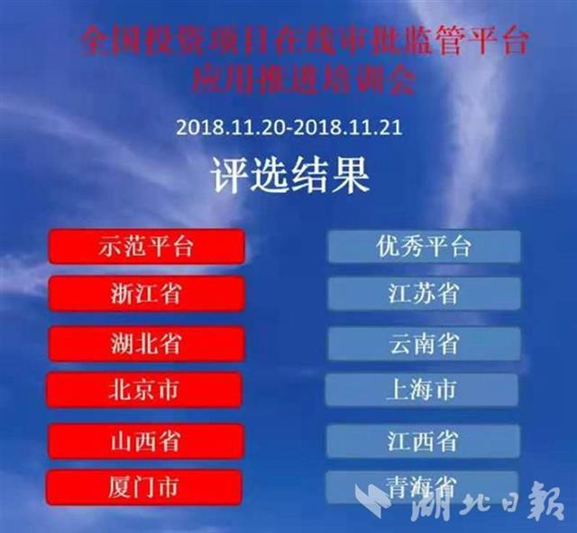 湖北日报讯(记者廖志慧、通讯员赵海涛)22日从省发改委获悉,在20至21日召开的全国投资项目在线审批监管平台应用推进培训会上,我省平台从全国37个在线平台中脱颖而出,获批全国示范平台。下一步,“湖北经验”将在全国推广。