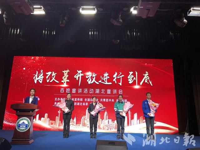 湖北日报讯(记者彭小萍、通讯员姚雪)12月3日,由中央宣传部、全国总工会、共青团中央、全国妇联主办,团省委、武汉大学承办的“将改革开放进行到底”百姓宣讲活动湖北宣讲会在武汉大学举行。