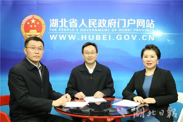 省扶贫办党组成员、副主任蔡党明(左二),红安县副县长鲍晨辉(左一)做客省政府网“在线访谈”