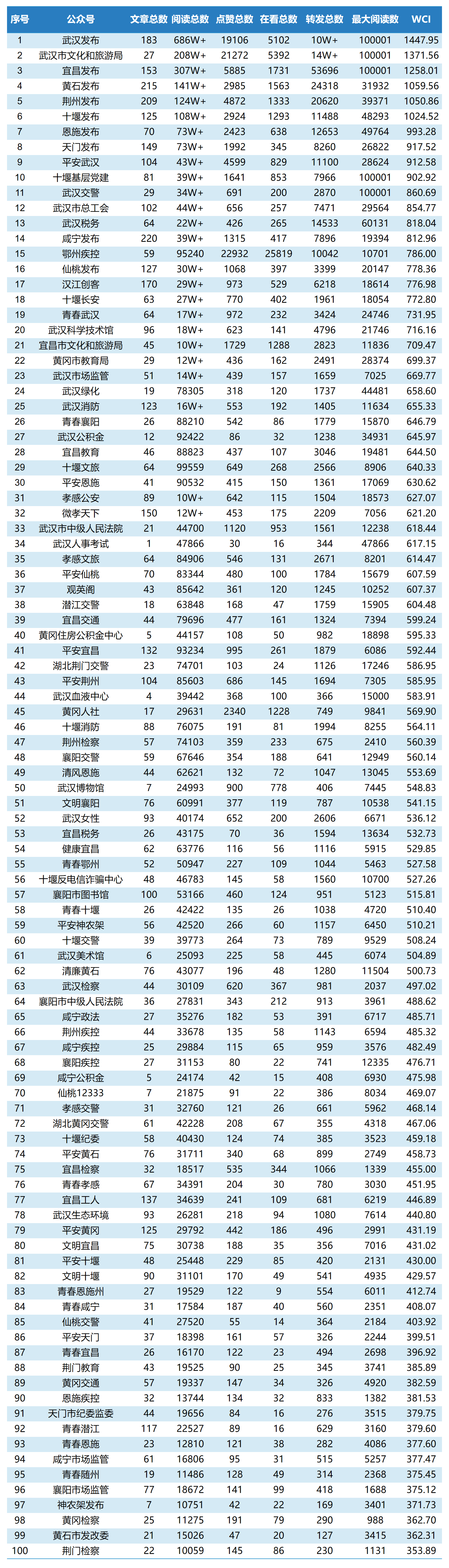 图:湖北市州微信排行榜TOP100