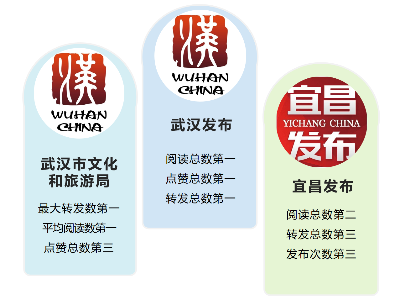 2月10日,由荆楚网(湖北日报网)、楚天舆情数据研究院制作的湖北市州微信排行榜1月榜单发布,“武汉发布”“武汉市文化和旅游局”“宜昌发布”蝉联前三。1月,“武汉发布”“武汉市文化和旅游局”转发总数破10万,“十堰发布”发文总数增量高达71篇,“宜昌市文化和旅游局”携1篇文章首登原创热文TOP30。