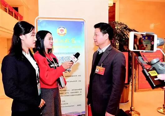 图为:湖北日报全媒记者杨康(左二)、黄洁如(左一)联袂采访政协委员左明章。(湖北日报全媒记者魏铼摄)