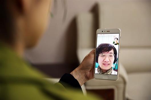 图为慢性病患者在手机上视频问诊