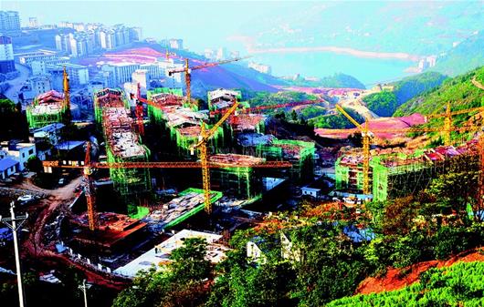 4月12日,巴东县冯家湾易迁安置点工地机器轰鸣,好不热闹,工人师傅们正为贫困户按时入住加班加点地忙碌。该安置点位于官渡口镇五里堆社区,占地面积95.11亩,于2018年6月开工建设,预计今年6月底可全部竣工。届时,巴东县将有772户2578名贫困户乔迁新居。(视界网梁勇摄)