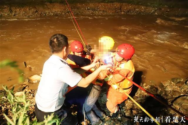 楚天都市报8月10日讯(记者关前裕 通讯员蒋锋 徐源祥 )8月9日17时许,短时强降雨导致十堰房县军店镇指北村突发山洪,当地沙厂3名员工被河水围困,且洪水不断上涨,3人随时可能被洪水卷走。当地消防部门立即赶往现场实施救援,经过3个多小时的紧张救援,成功将3名被困者营救上岸。