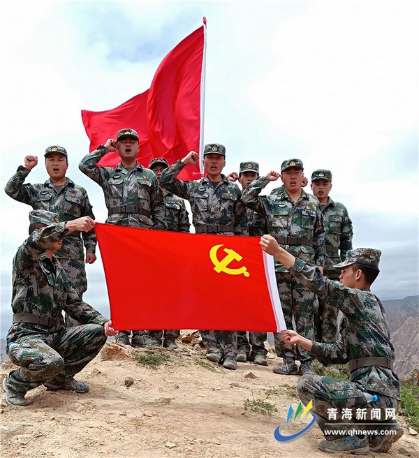 图为7月1日,纳赤台兵站的10名战士,历时2个小时,爬上兵站对面那座海拔4030米的山顶,重温入党誓词。