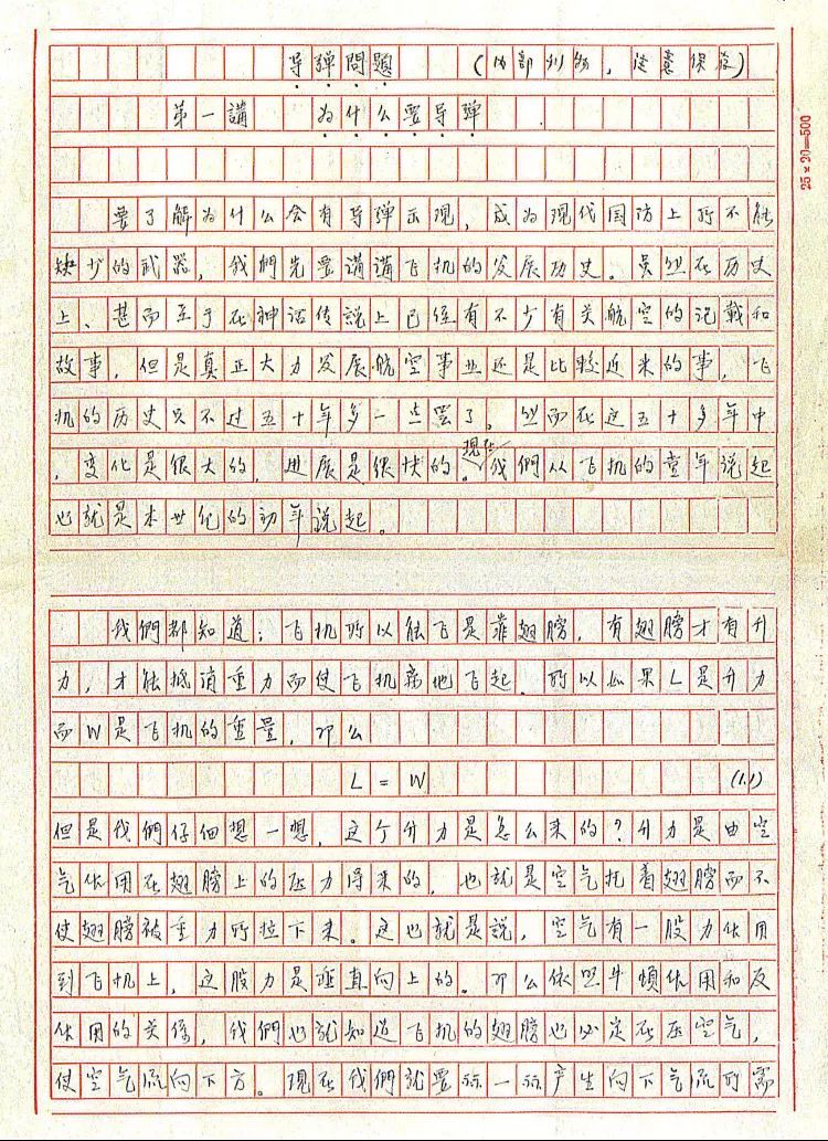 从1956年至1961年,钱学森在繁忙的工作之余在各种场合讲述“导弹概论”“星际航行概论”等课程上百次。那段时间来到老五院和中科大力学系的学生,大都有幸受到过钱老的面授“真传”。