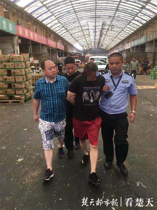 29日上午10时,守候在该市场大门附近的肖汉辉,发现黑衣男子骑着电动车拐进该市场A区,便迅即向王凡、刘敏发出跟踪信号。男子行至一果批门店前停下电动车后,摇头晃脑走进店内,一屁股坐落方凳上。肖汉辉一挥手,两辅警快步合围上前将男子控制。男子一阵惊慌,便大呼“抢劫”,拼力反抗,民警合力将其制服戴上手铐。民警追问其姓名。男子谎称名叫李某某、河南柘城人。民警心中有了底数,随后将其押上警车带至汉兴街派出所。