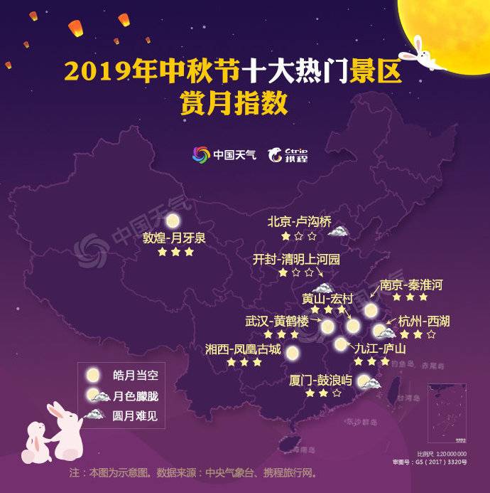 那么,中秋节出游,哪些景区是赏月的绝佳去处?中国天气网联合携程发布的《2019年中秋节出行和赏月报告》显示:杭州西湖、黄山宏村、卢沟桥、南京秦淮河、庐山、开封清明上河园、武汉黄鹤楼、厦门鼓浪屿、凤凰古城、敦煌月牙泉将是今年中秋出游的十大热门景区。