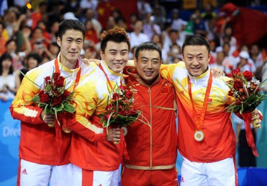 中国队在男单和女单比赛中包揽了金银铜全部6枚奖牌:马琳、王皓、王励勤分获男单金银铜牌;张怡宁、王楠、郭跃分获女单金银铜牌。
