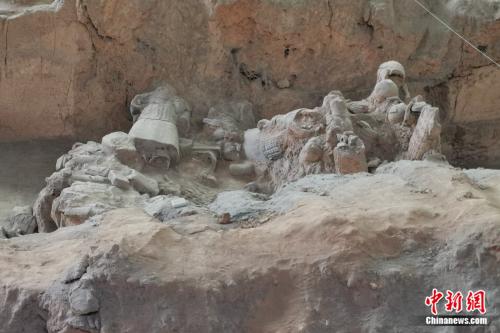 中新网客户端西安9月18日电(张旭)秦始皇兵马俑号称世界第八大奇迹。实际上,秦始皇帝陵的兵马俑在出土时,并不像现在人们所看到的那样气势恢宏,多呈倒伏状,甚至只有残片散落在地面。