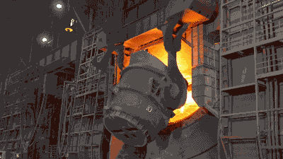 工人们在炎热的夏天里顶着高温炼钢