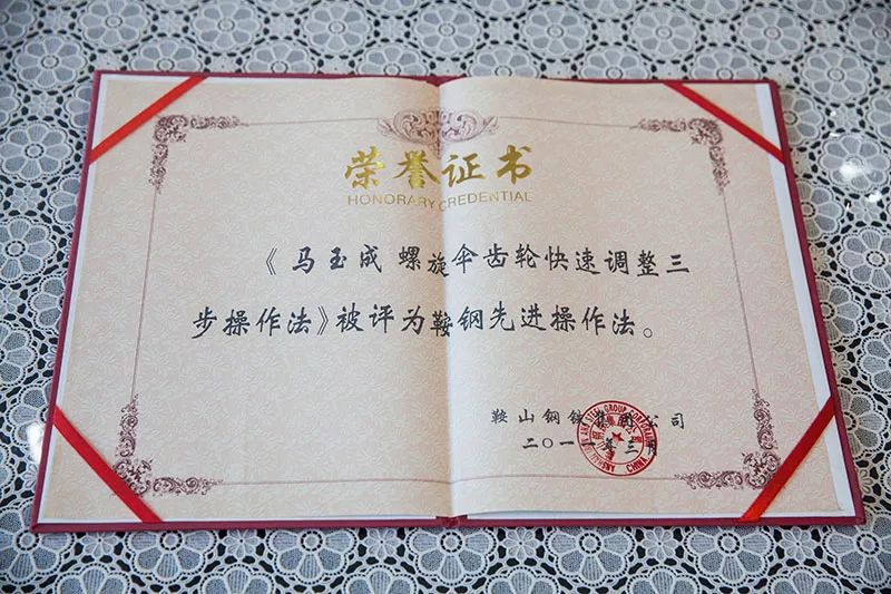 马玉成获得的荣誉证书