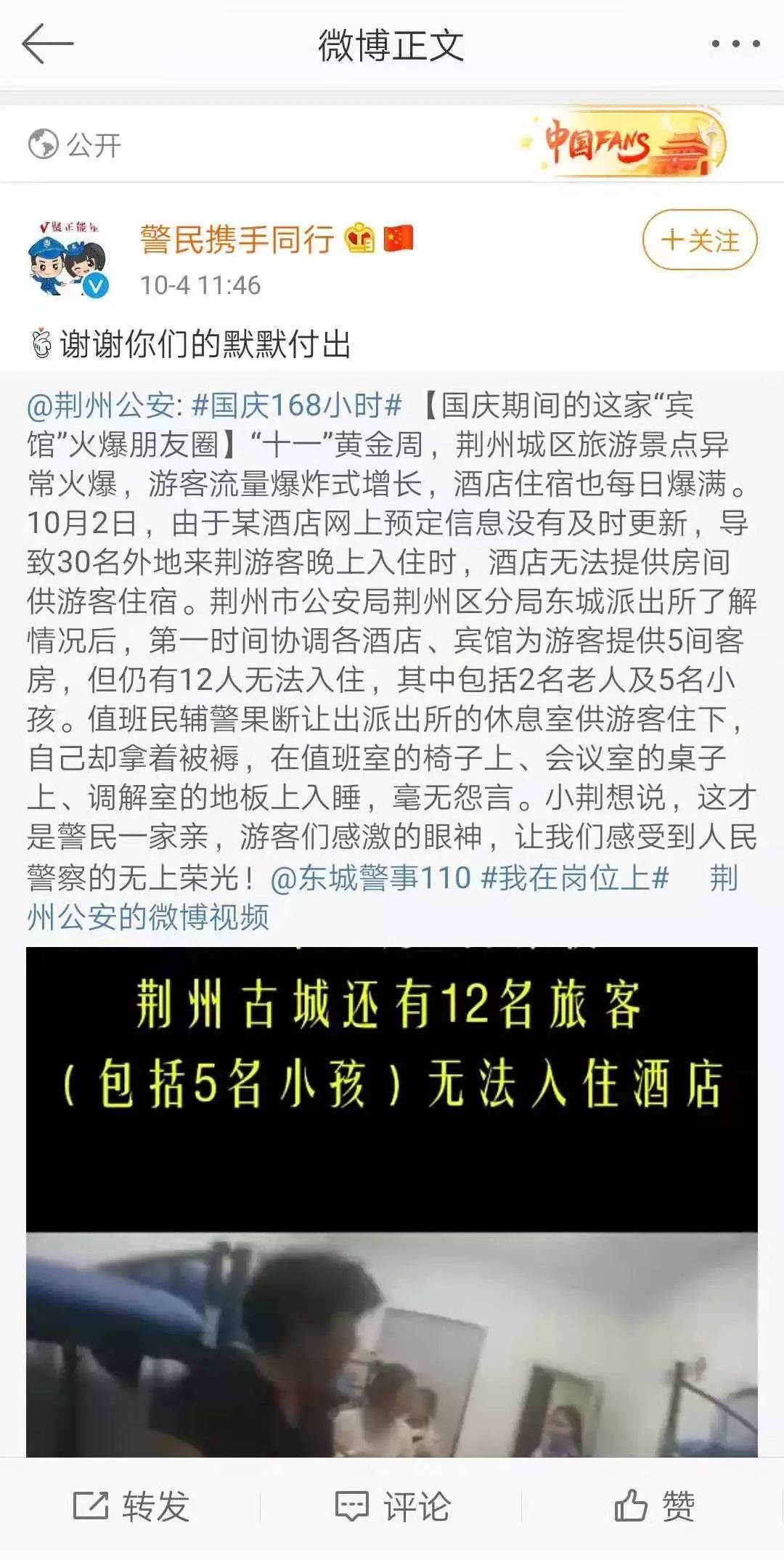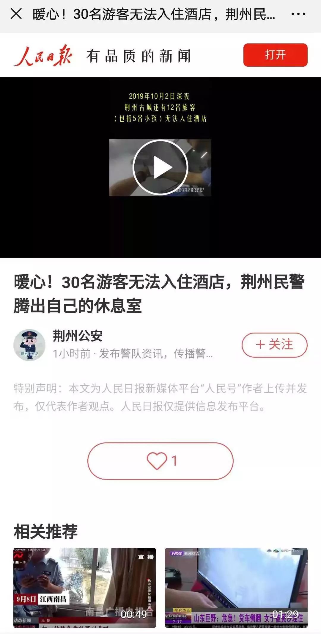 “是的,荆州的警察叔叔真热情,真的太好了。”