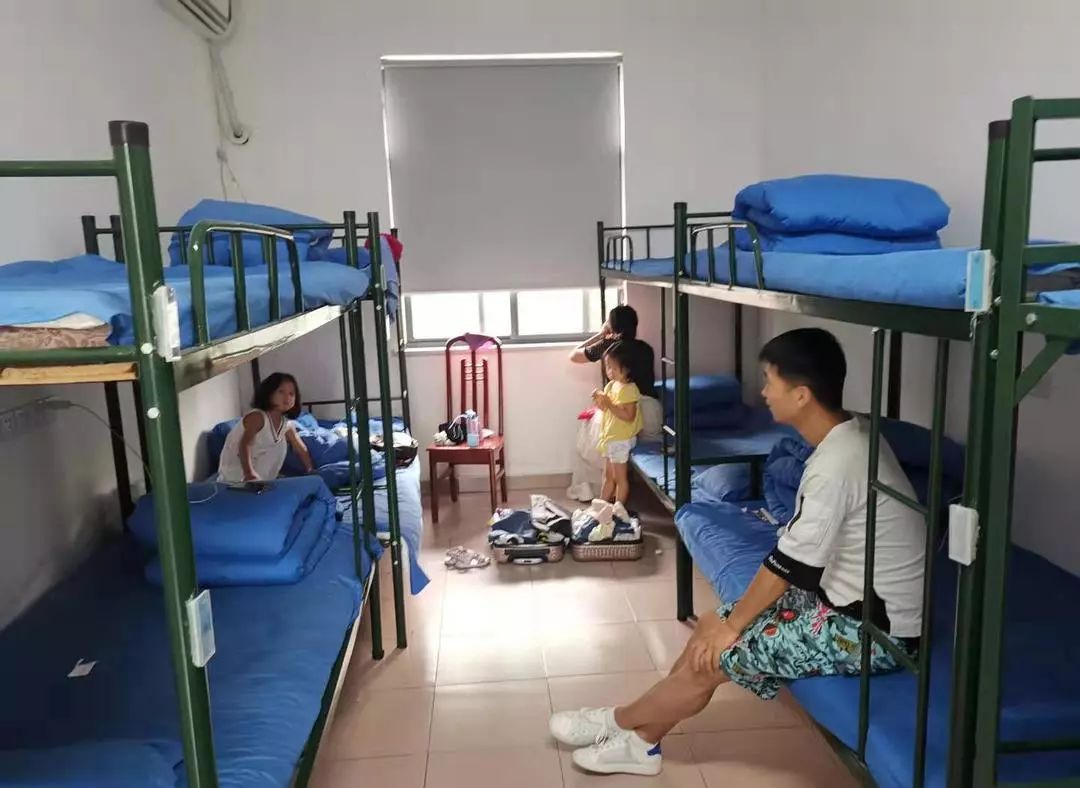 民警徐付蝶(女)带领辅警熊永杰、黄乔,帮助游客们搬行李、抱小孩,带他们来到二楼民警休息室,合理安排床铺、被窝,告诉他们洗漱设施的使用。1个小时后,12名游客终于全部安顿完毕。