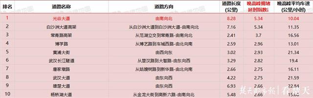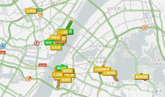 预计下周最堵的路段依次是:珞狮路(由南向北)、二环线(红庙立交至水果湖隧道)、青年路(发展大道至利济北路)、黄浦大街(由西向东)、唐家墩路(姑嫂树路至新华路)、长江隧道(楚汉路至大智路)、杨桥湖大道(金龙大街至高新六路)、二环线由西向东进入竹叶山立交、珞狮路辅路(街道口至洪山侧路)、杨桥湖大道(高新六路至金龙大街)。