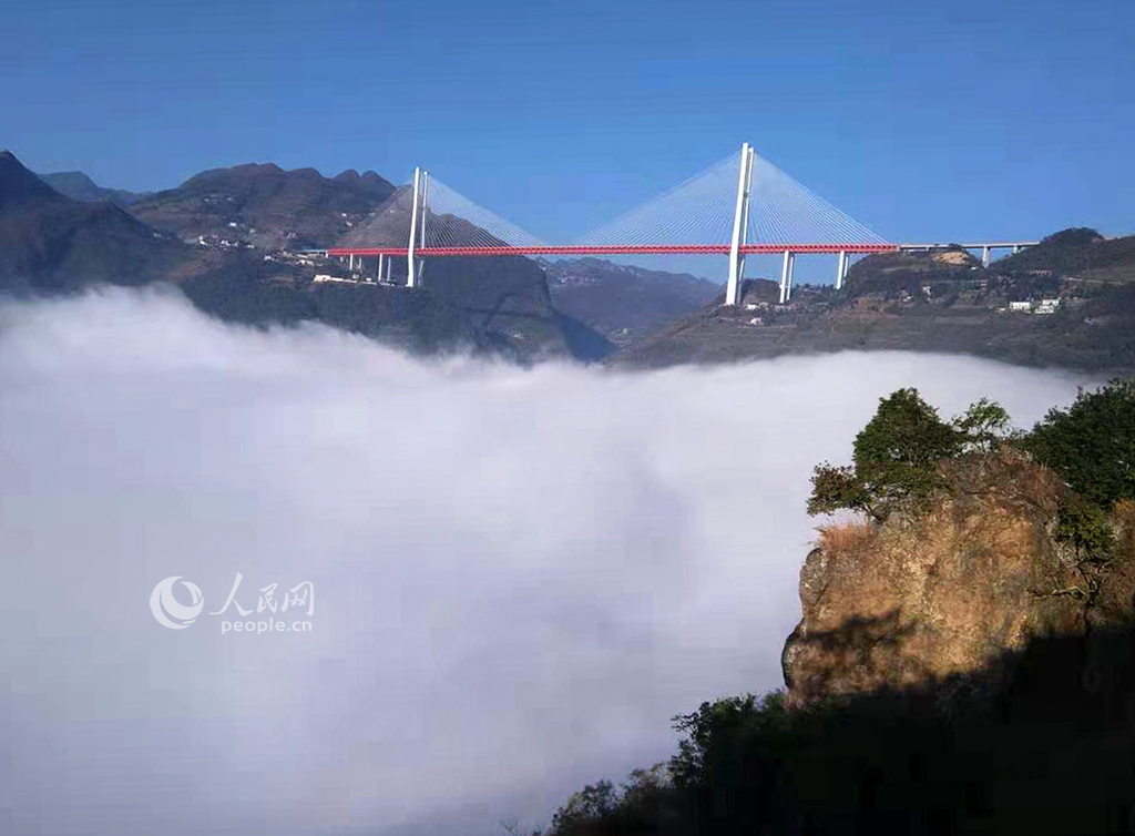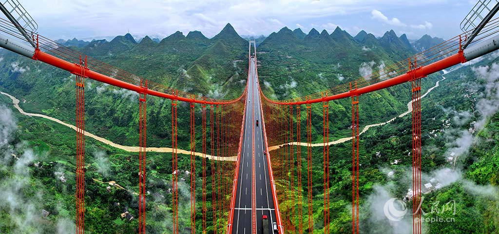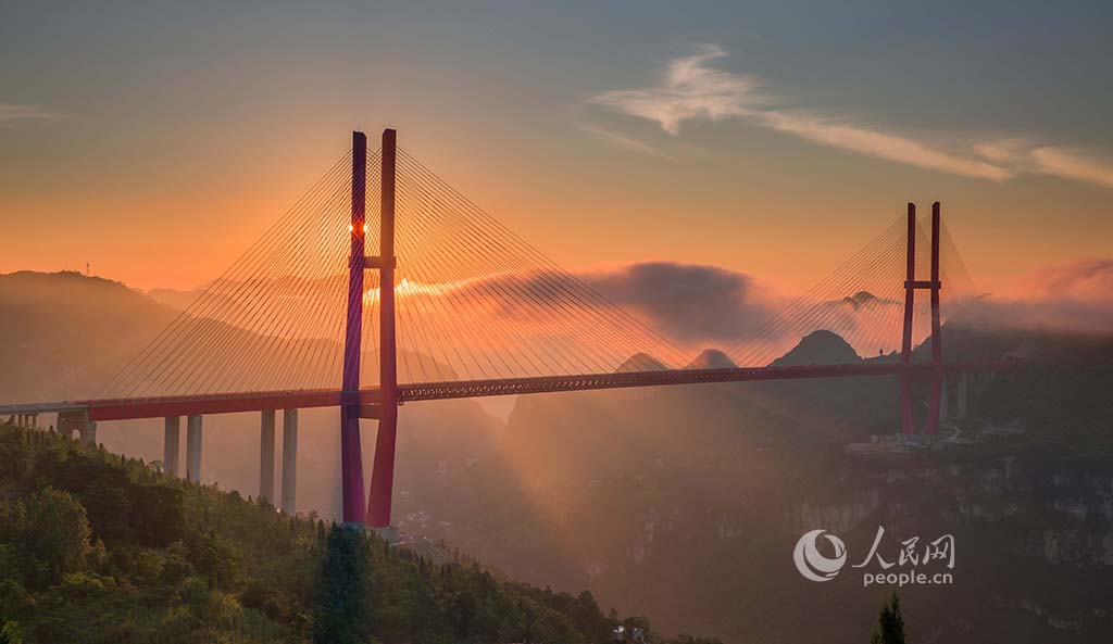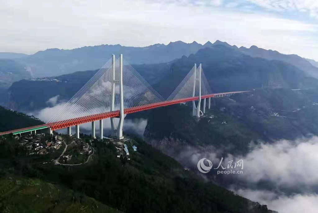 世界第一高桥贵州北盘江大桥。桥面至谷底565米。马选军 摄