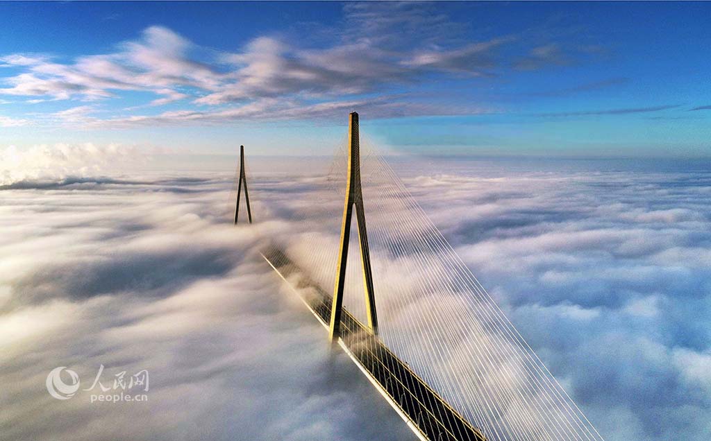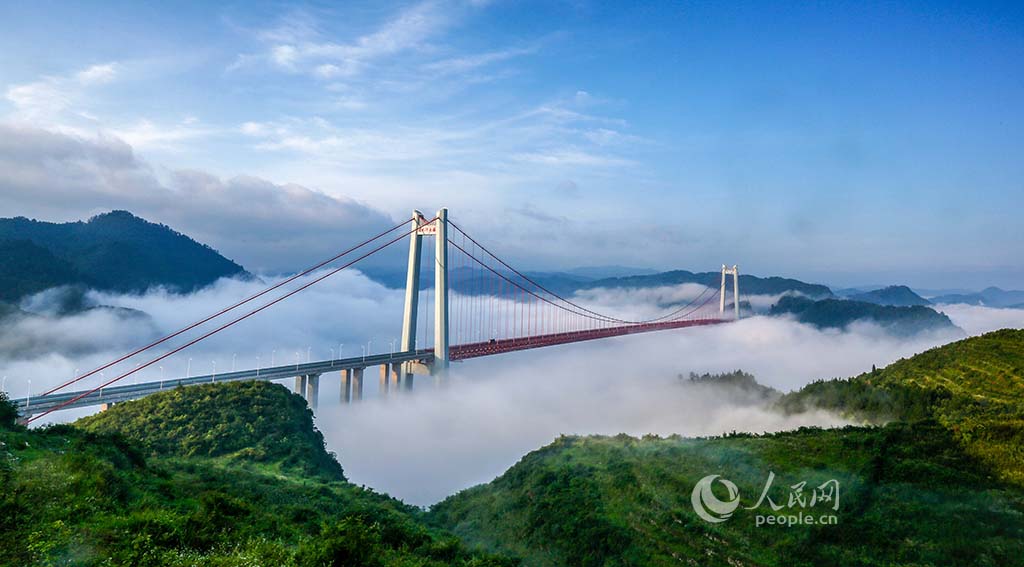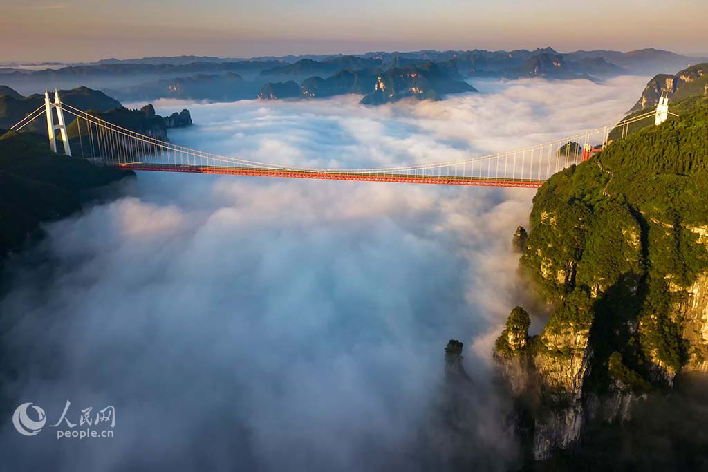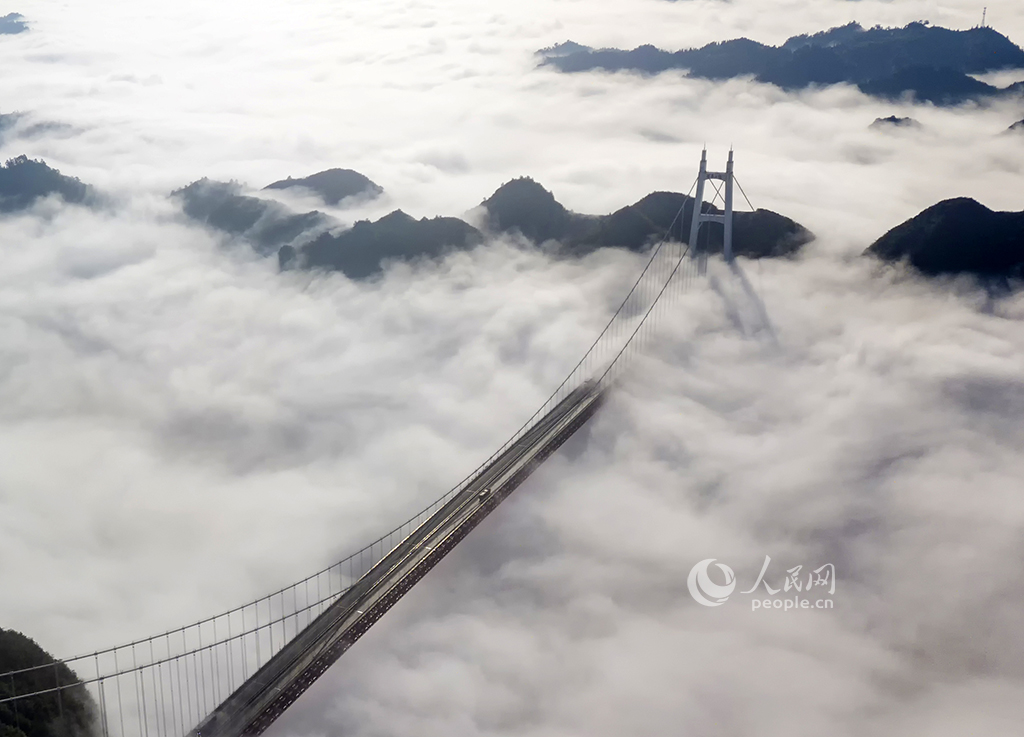 湖南湘西矮寨大桥周围云海缭绕,蔚为壮观。 刘振军 摄