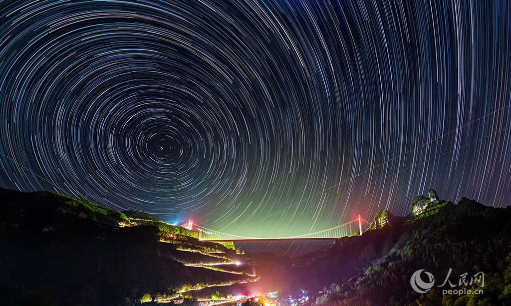 湖南湘西矮寨大桥星轨。张术杰 摄(多张后期叠加)