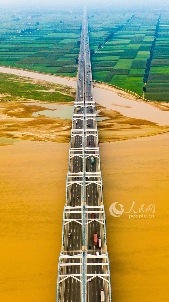 河南郑州刘江黄河大桥。是目前亚洲最长最宽的高速公路大桥。刘帅冶 摄