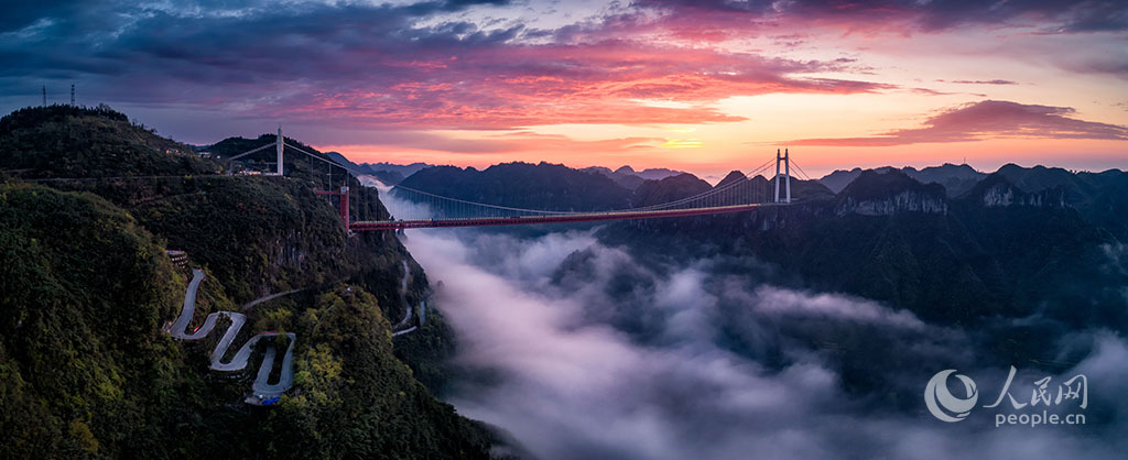 湖南湘西矮寨大桥云海日出。张术杰 摄