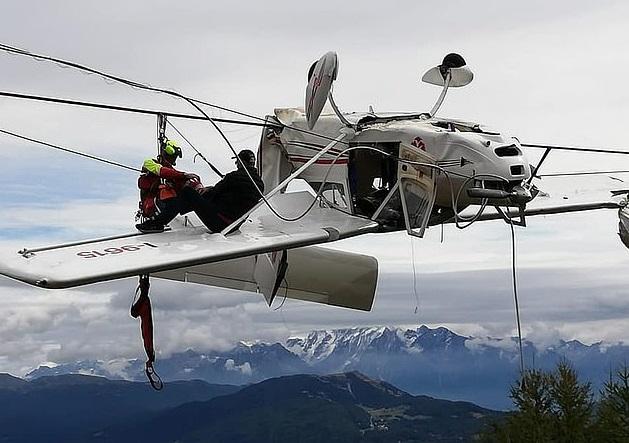 据英国《每日邮报》报道,6日中午,一名62岁的飞行员驾驶一架小型飞机飞越阿尔卑斯山上空,不料突然在途中急速向山下坠落。不过,飞机在下坠过程中,幸运的碰到横在山间的缆车电缆,高架电缆及时阻止了飞机继续坠落。