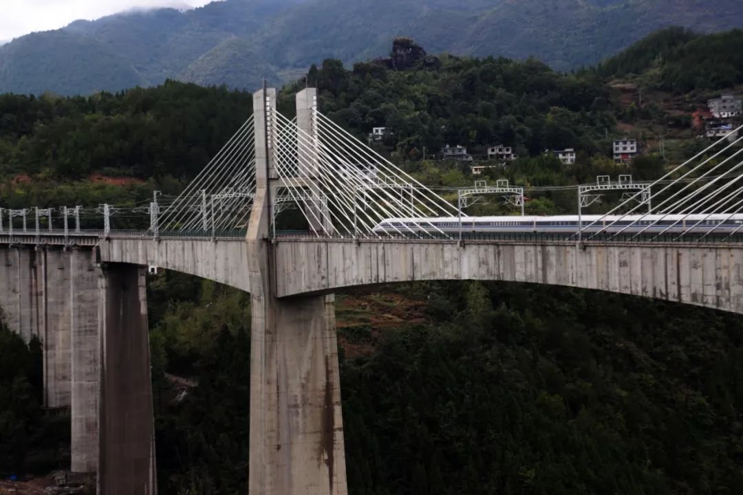 △一列联调联试的“和谐号”动车组行驶在黔张常铁路黔江区阿蓬江特大桥上(资料图)