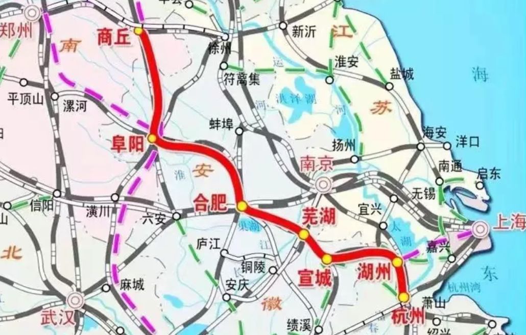 商合杭高铁起自河南商丘,终至浙江杭州,设计时速350公里。商合杭高铁是有效联系中原、江淮与长三角重要的交通干线。通车后,合肥与省内周边城市将形成半小时至1小时的交通圈,合肥到杭州、商丘均可实现1天往返。