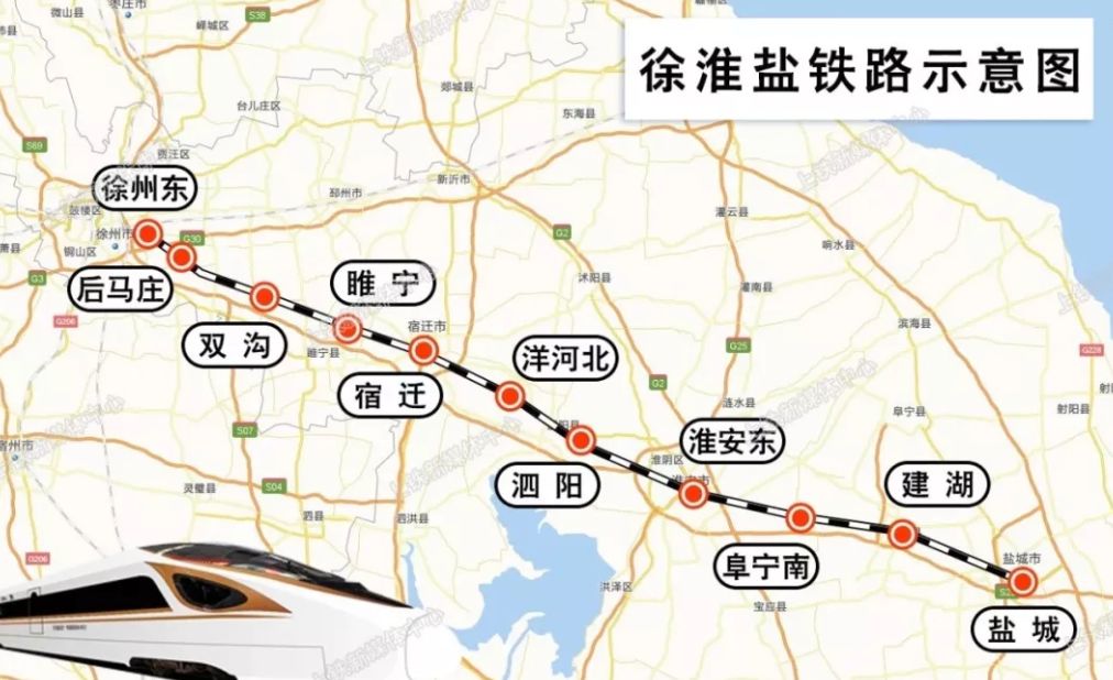 徐淮盐铁路西起徐州,东至盐城,全线共设10个车站,设计时速250公里。