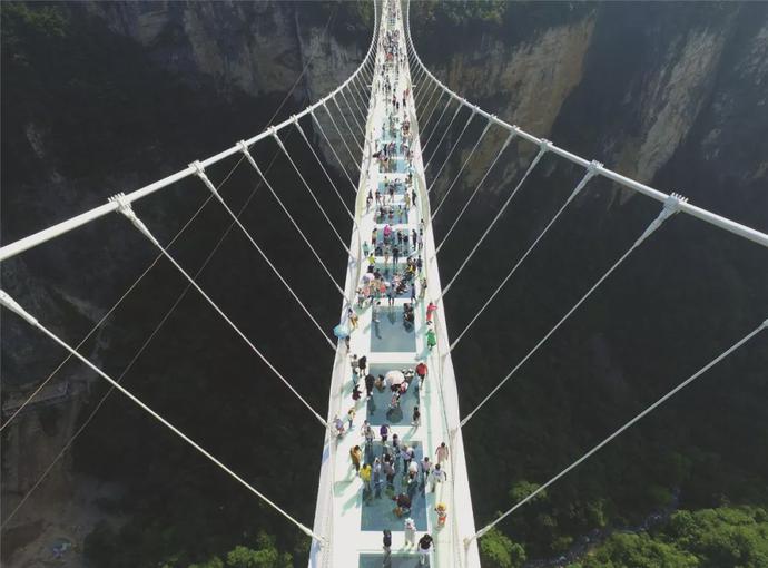 2016年8月,耗时4年设计建造的张家界“云天渡”玻璃桥正式对外开放,桥面长375米、宽6米,桥面距谷底相对高度约300米。这座全透明的“云天渡”,长度和高度达到当时的世界第一,创下了10项世界纪录,被CNN列入世界11座“最壮观的桥”名单之内。