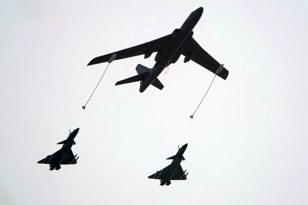 10月1日上午,庆祝中华人民共和国成立70周年大会在北京天安门广场隆重举行。这是加受油机梯队。新华社记者 李刚 摄