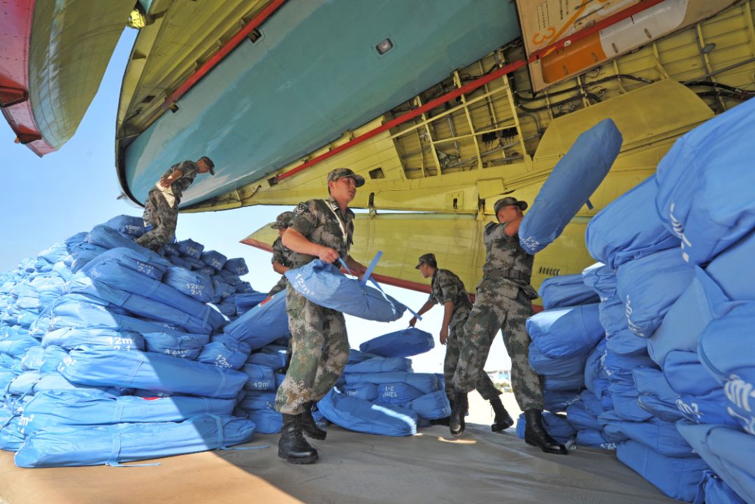 2011年8月下旬,巴基斯坦南部遭遇严重洪灾,造成重大人员伤亡和财产损失。9月22日6点30分,中国空军4架伊尔-76大型运输机从南京禄口机场陆续起飞,执行为巴基斯坦运送人道主义救援物资的任务。新华社发(贲道春 摄)