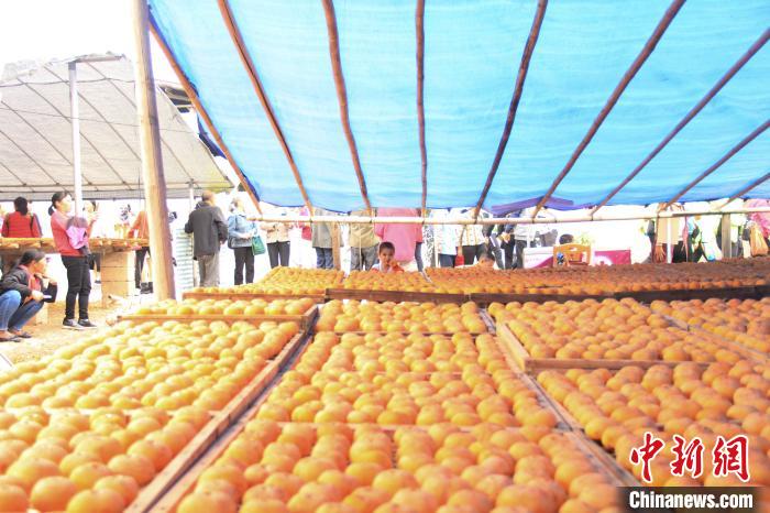 11月13日,平乐县桥亭乡大塘口村美食节分会场,游客共同分享“平乐柿子红了”的丰收喜悦。 杨宗盛 摄