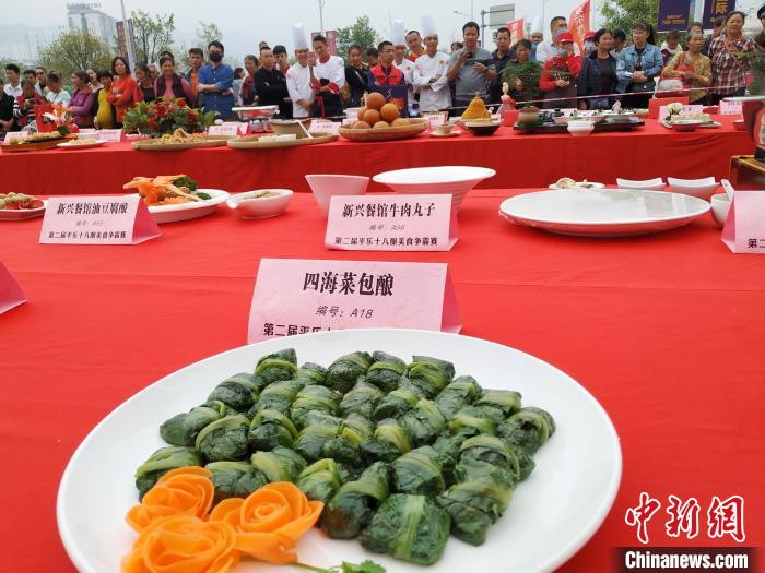 已有20年厨师经验的平乐当地参赛选手,烹饪大师秦永昭之厨艺衣钵传人秦大权认为做菜也是一门艺术,在当地,几乎家家户户都善制“酿菜”,荤素搭配、醇香可口,是人们日常餐桌以及宴席上的最爱。