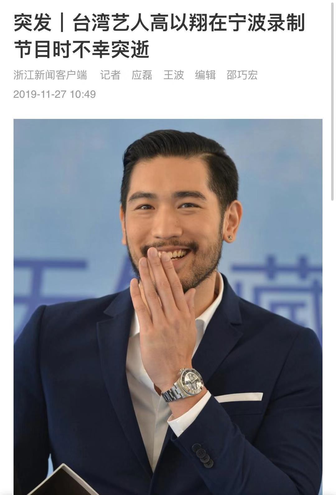 11月27日凌晨,有知名博主爆料,演员高以翔在节目录制过程中晕倒抢救,该博主还晒出了救护车的照片,并表示高以翔已经送到医院抢救。浙江新闻客户端证实高以翔抢救无效去世。